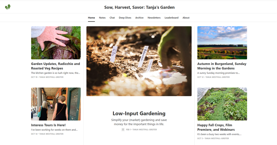 Seit Ende Jänner bin ich auf Substack, eine werbungsfreie Plattform für Autor*innen, wo man wirklich tolle Newsletters und noch mehr abonnieren kann. Abonnent*innen bekommen meinen wöchentlichen Newsletter gratis. Ich schreibe auf Englisch und werde in den kommenden Monaten mein Projekt "Sow, Harvest, Savor" (Säen, Ernten, Genießen) Schritt für Schritt ausbauen. Klicke auf das Bild unten, um zu den Beiträgen zu kommen.